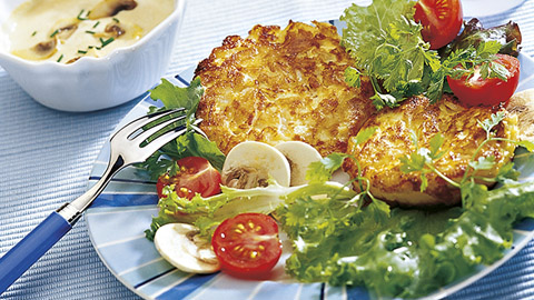 Faites chauffer l’huile dans une poêle à frire. Versez-y le mélange de pommes de terre à l’aide d’une petite louche.